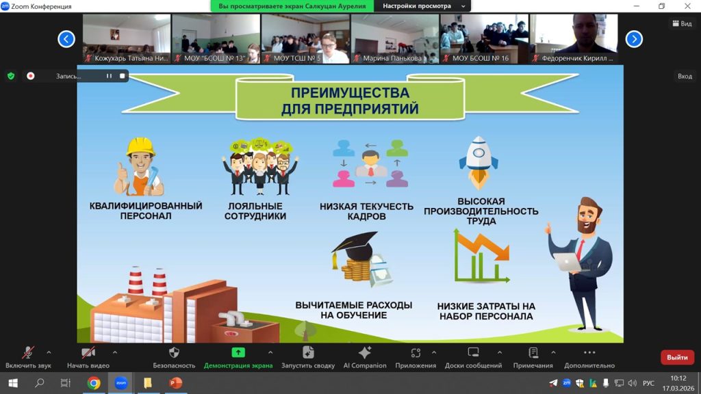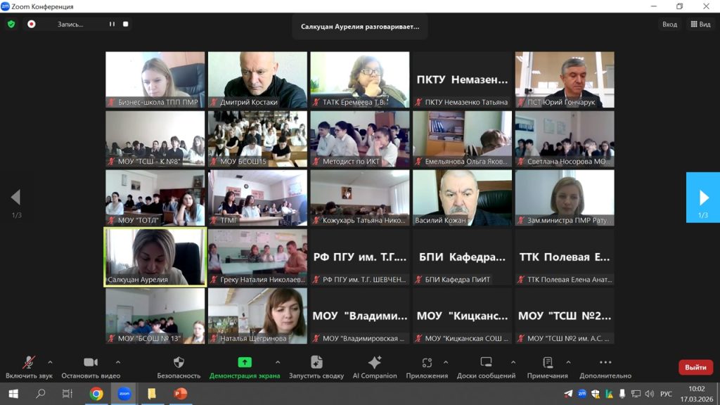 17 и 18 марта 2026 года Торгово-промышленная палата Приднестровья провела профориентационную видеоконференцию «Профессии будущего», объединившую учащихся выпускных классов и представителей системы профессионального образования республики.