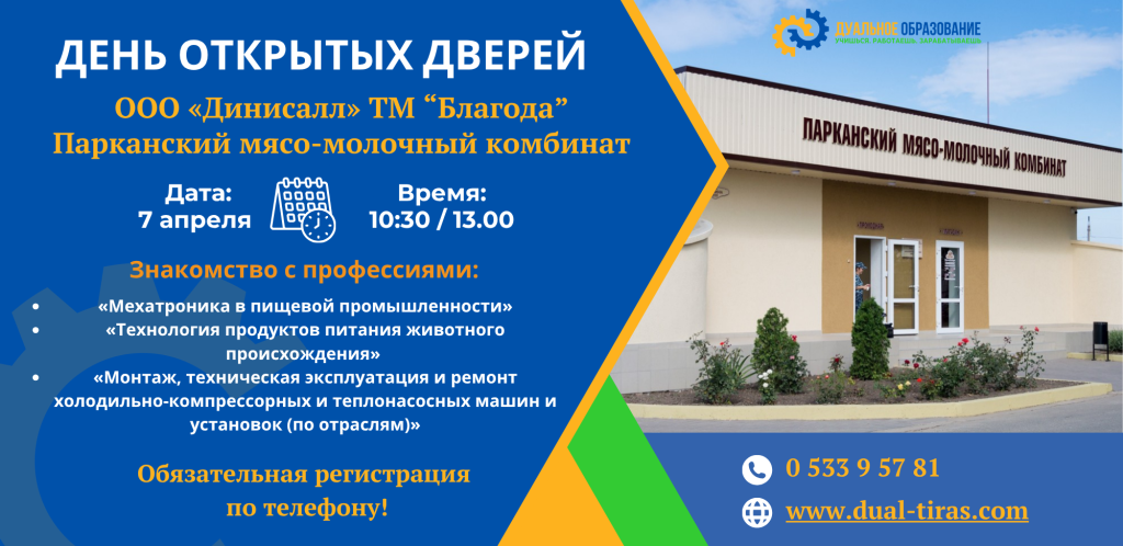 Торгово-промышленная палата Приднестровья приглашает всех школьников и их родителей, интересующихся новыми технологиями и современной техникой, на дни открытых дверей, которые станут познавательным опытом для будущих абитуриентов. Мероприятия запланированы с 3 по 27 апреля 2026 года и будут проводиться на нескольких крупных предприятиях Республики.