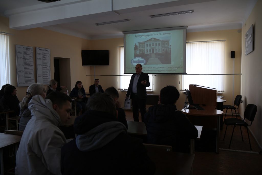 Первая часть мероприятия прошла на кафедре автоматизации технологических процессов и производств Рыбницкого филиала «Приднестровского государственного университета им. Т.Г. Шевченко». С приветственными словами к участникам обратились заведующий кафедрой Владимир Евгеньевич Фёдоров и директор Бизнес-школы НП «ТПП ПМР» Аурелия Александровна Салкуцан. Они подчеркнули важность осознанного выбора профессии и рассказали о возможностях, которые открывает перед молодёжью система практико-ориентированного (дуального) обучения.